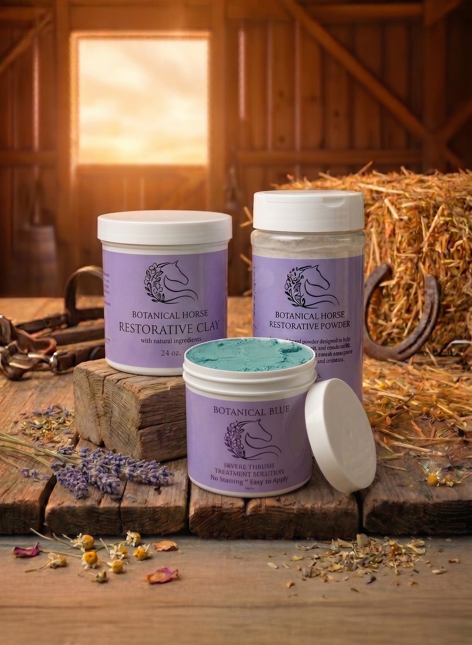 Yes. Pack the hooves with Botanical Blue Clay, apply Restorative Clay to any skin issues, and use Restorative Powder under tack or on areas prone to moisture buildup. They're designed to work as a system.